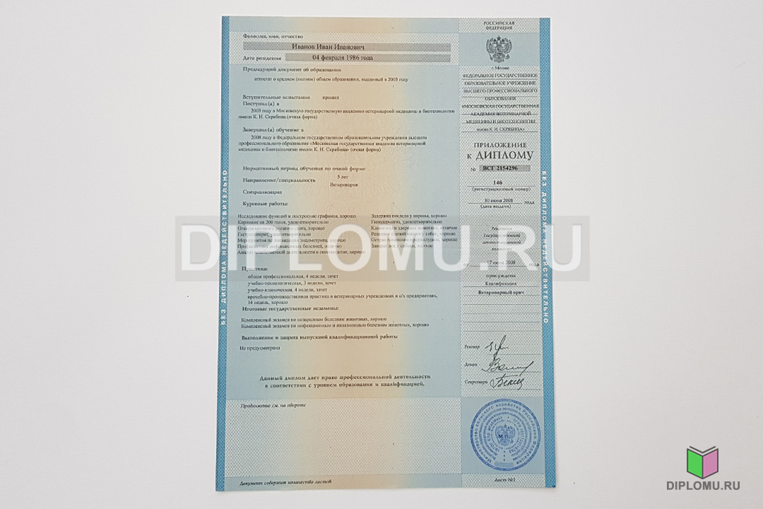 На нашем сайте Вы можете купить диплом об окончании любого ВУЗа России в 2004-2009 годах. Ниже представлены фото и цена такого документа. Наши специалисты заполнят диплом по всем правилам, установленным Министерством образования и науки РФ. Заверяются «мокрыми» печатями и нужными подписями. Обращайтесь, делаем качественно, быстро, анонимно!